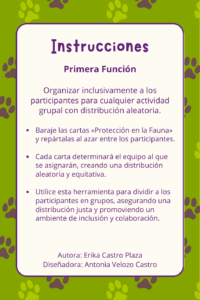 - Baraje las cartas «Protección en la Fauna» y repártalas al azar entre los participantes.